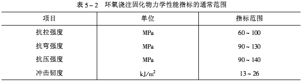 (2)力學特性檢測澆注件力學性能的項目主要有抗張、抗彎、沖擊及抗壓強度,彈性模量、撓度等。作為電器絕緣的環氧澆注零件,其主要的力學性能指標范圍見表5-2。但這些都是在實驗室通過儀器檢測出來的,在澆注件的實際工作中,評價和分析零件的蠕變強度和耐龜裂性更加必要。
