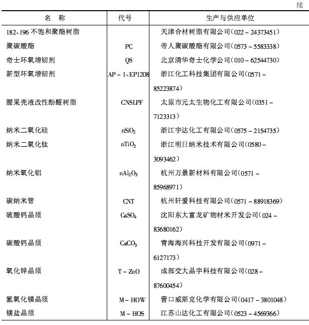 有些納米和晶須無機物會對環氧樹脂產生很好的增韌作用,同時還有增強效果,并且又可提高耐熱性。環氧膠黏劑所用的增韌劑如表2-12所示。