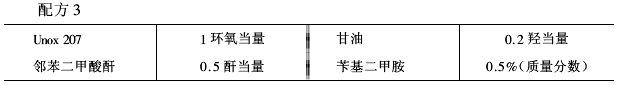 (二)二氧化雙環戊二烯的固化及應用 (1)Unox 207的固化環氧化合物UD-OX 207在沒有引發劑存在下與酸酐反應是非常慢的,它不像雙酚A環氧樹脂中因分子鏈內有羥基而反應很快。