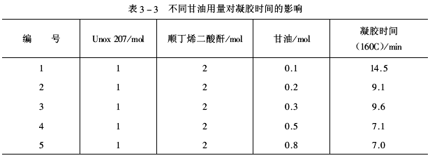 該反應在有機酸(RCOOH)存在時而加速。 對于多元醇的用量方面。鄧先模、黃志鏜做了實驗,他們是用甘油代替三羥甲基丙烷,試驗結果如表3-3,圖3-3所示。由此可見羥基當量用環氧當量的0.15~0.3為宜。