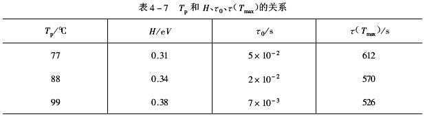 通過上述計算所得的活化能H,松弛時間τ0和τ(Tmax)列于表4-7。