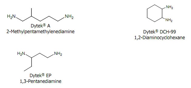 Epoxy resins cured with Dytek® amines have excellent properties for use in coating, civil engineering, adhesive, and composite applications. These properties include greater flexibility for Dytek® A, better chemical resistance and extremely low odor and low color for Dytek® EP, best chemical resistance and higher glass transition temperature for Dytek® DCH-99, and a lower adduct viscosity for Dytek® A, Dytek® EP, and Dytek® DCH-99 versus competitive amines.