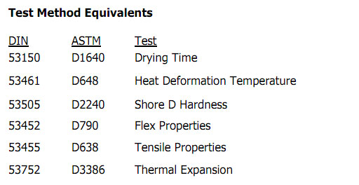 The DIN test methods used are listed at the bottom of page 5 along with reference to similar ASTM methods