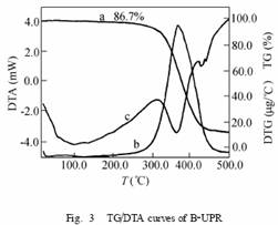 曲線3是差熱曲線,兩者在310℃都出現一放熱峰,是未完全固化[GuHua]的樹脂[ShuZhi]進一步反應放出的熱量。364℃出現的吸熱峰為樣品的裂解峰。據中國[ZhongGuo]環氧樹脂[ShuZhi]行業協會(www.epoxy-e.cn)市場專家介紹,綜上所述選用適當配比的不飽和聚酯[JuZhi],與環氧樹脂[ShuZhi]反應得到的感光樹脂[ShuZhi],其光固化[GuHua]膜的耐堿性大大提高,表面硬度由2H提高到4H。固化[GuHua]體積收縮率由7%下降到0.8%,對底材的附著力明顯增加,且熱失重率降低了6.8%。擴展了它在許多方面的用途。