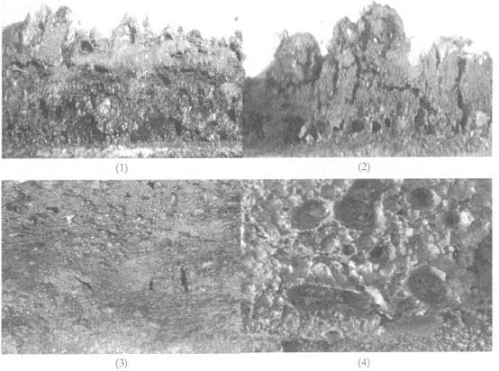 3—15%固化劑[GuHuaJi]含量對應的炭化層(內部);4—40%固化劑[GuHuaJi]含量對應的炭化層(內部)