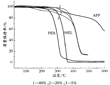 圖3APP、MEL、PER和環氧[HuanYang]涂膜的TGA曲線
