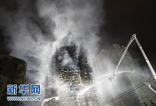 11月15日20時左右,大樓的明火已經基本撲滅 |
