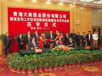 上海,中國 – 2012年11月 8日, 青海大美煤業股份有限公司與陶氏化學公司(“陶氏”)的全資子公司聯合碳化物化學品及塑料技術有限公司,簽署了UNIPOL™聚丙烯工藝技術的許可協議。 這一位于中國青海省西寧經濟技術開發區的煤基聚烯烴項目計劃于2015年建成投產。其40萬噸/年聚丙烯裝置,將生產聚丙烯均聚物、無規共聚物和抗沖共聚物。