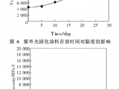 利用黏度測試法對它們的貯存穩定進行了研究。圖6表示貯存于透明的玻璃瓶的光固化涂料黏度隨存放時間的變化;.圖7表示貯存于不透明的塑料瓶的光固化涂料黏度隨存放時間的變化.在...